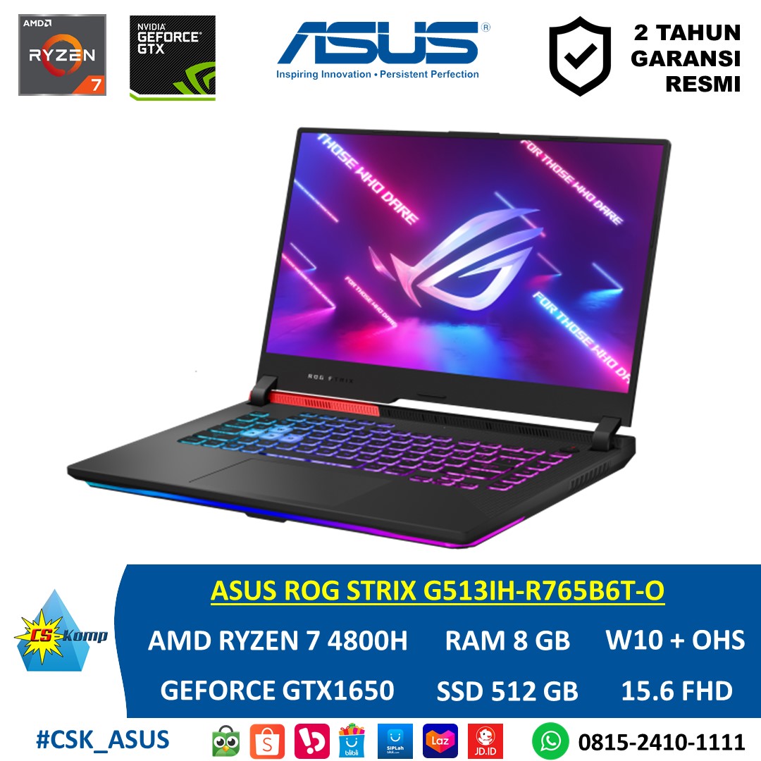 ASUS ROG G513IH-R765B6T-O | AMD Ryzen™ 7 4800H | GeForce GTX1650 | RAM 8GB | SSD 512GB | W10 | OHS | 15.6 FHD IPS