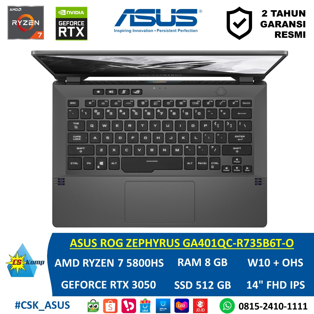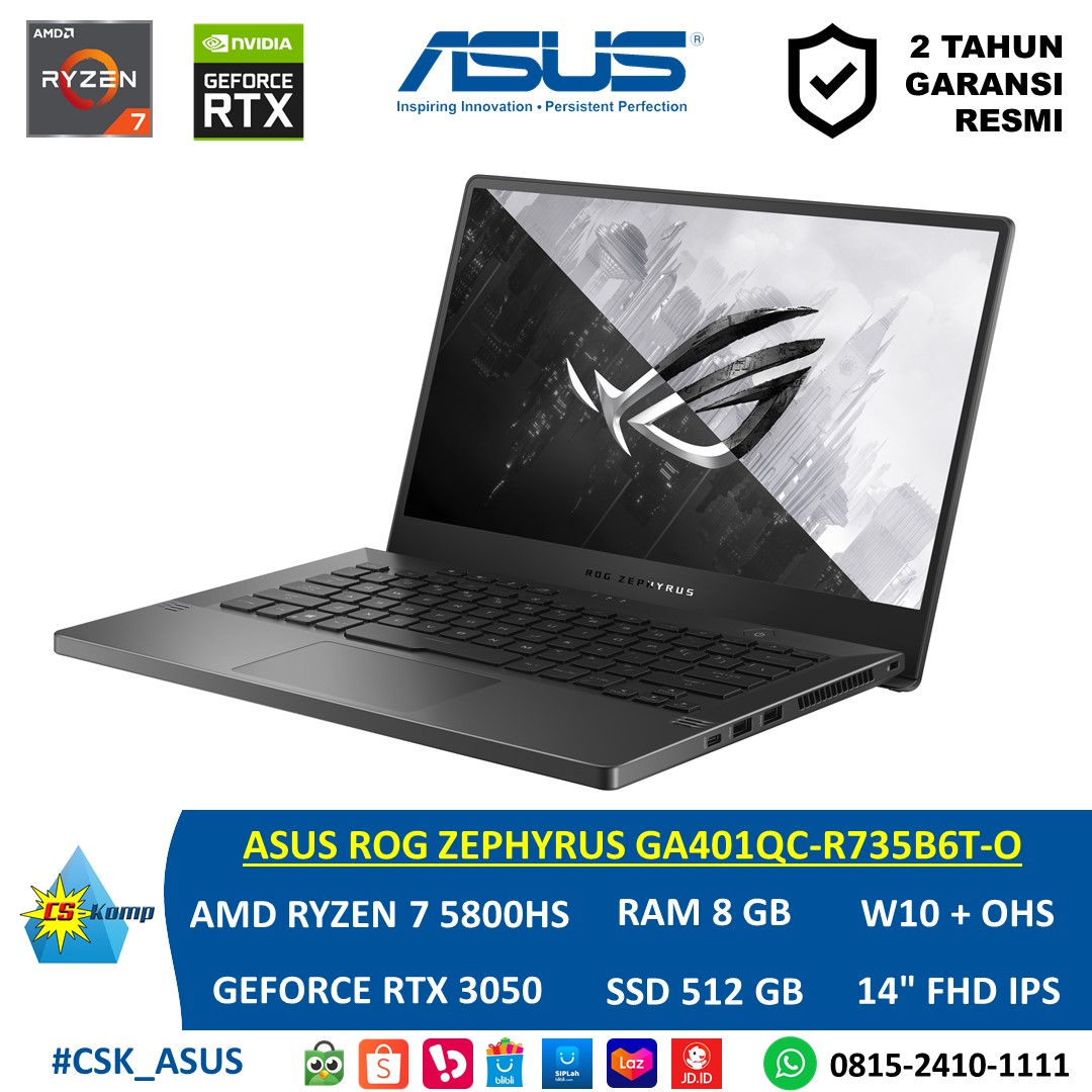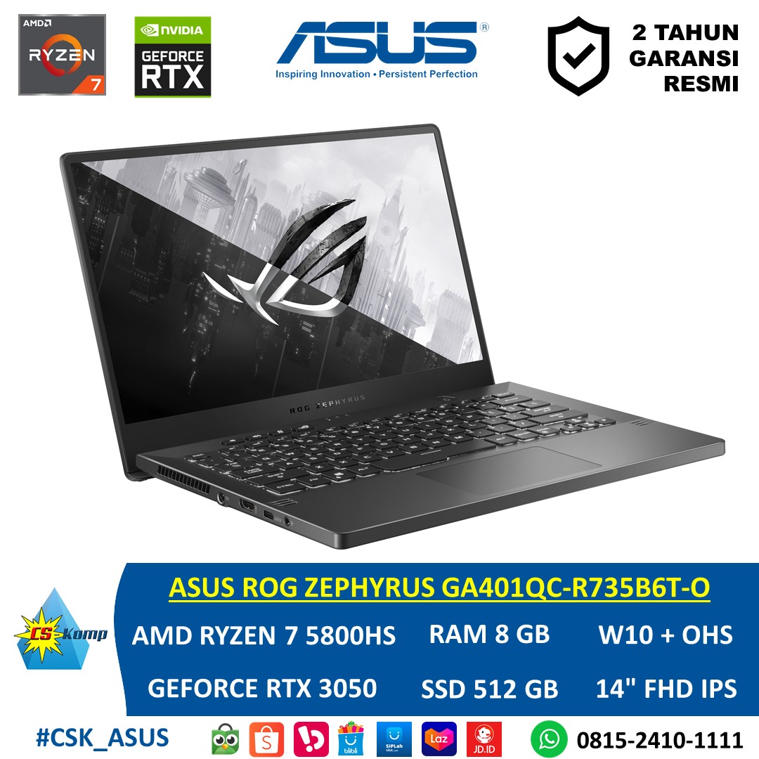 ASUS ROG ZEPHYRUS GA401QC-R735B6T-O | AMD Ryzen 7 5800HS | RAM 8GB | SSD 512GB | RTX 3050 | W10 | OHS | 14.0 FHD IPS